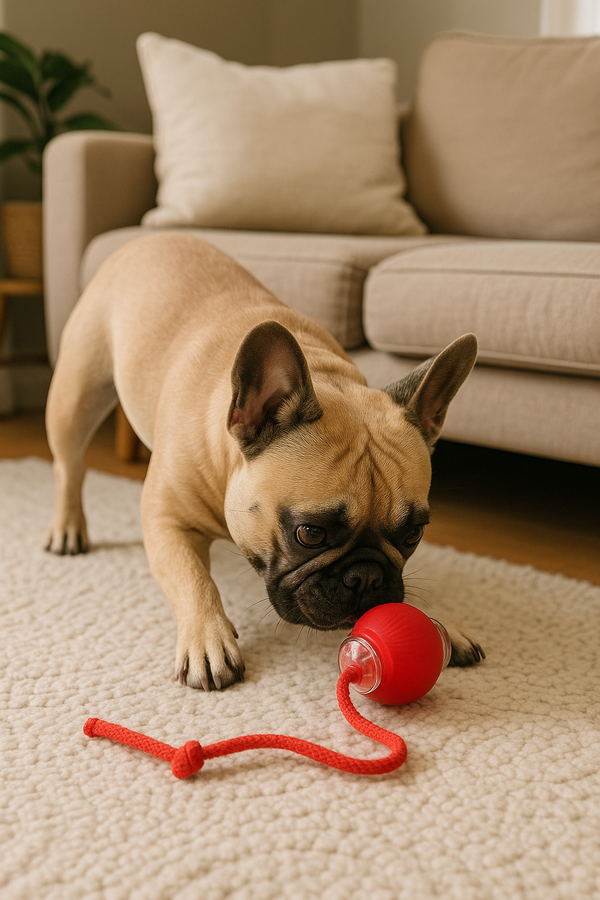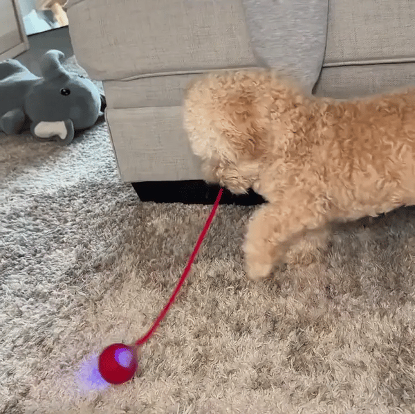 Den rullar oförutsägbart och snöret svänger lockande, vilket triggar jaktinstinkten och gör att hunden snabbt blir både fysiskt och mentalt stimulerad.